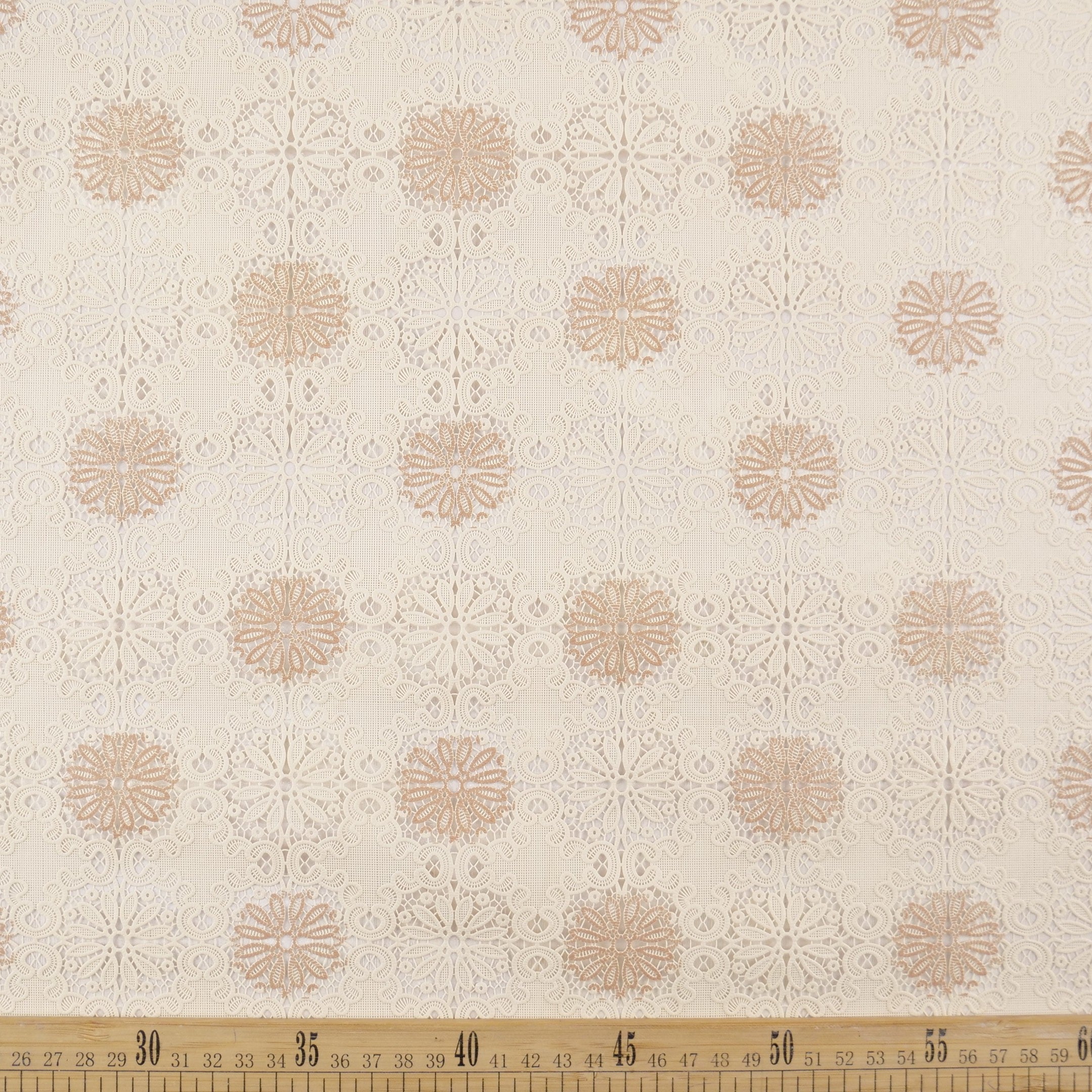 PVC JACQUARD NATURAL PERGAMINO CON FLORES
