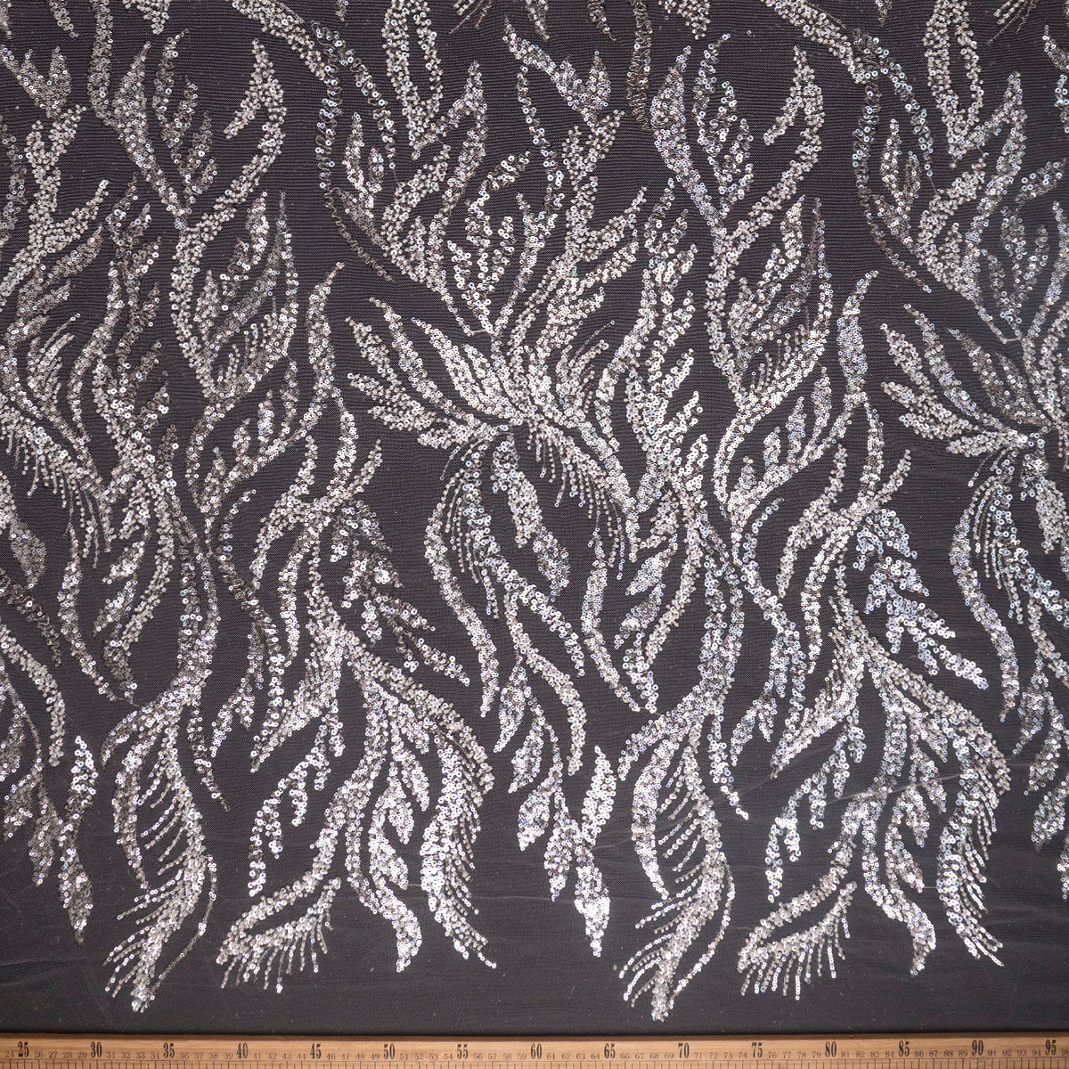 La tela Tul Galliano esta realizada sobre una base de tul en el cual se bordan diferentes tipos de diseños en hilos y cordones. A los cuales de manera ornamental se le aplican piedras, canutillos, mostacillas y paillettes haciendo que cada pieza sea diferente y se pueda usar tanto de día como de noche según la ocasión lo amerite.