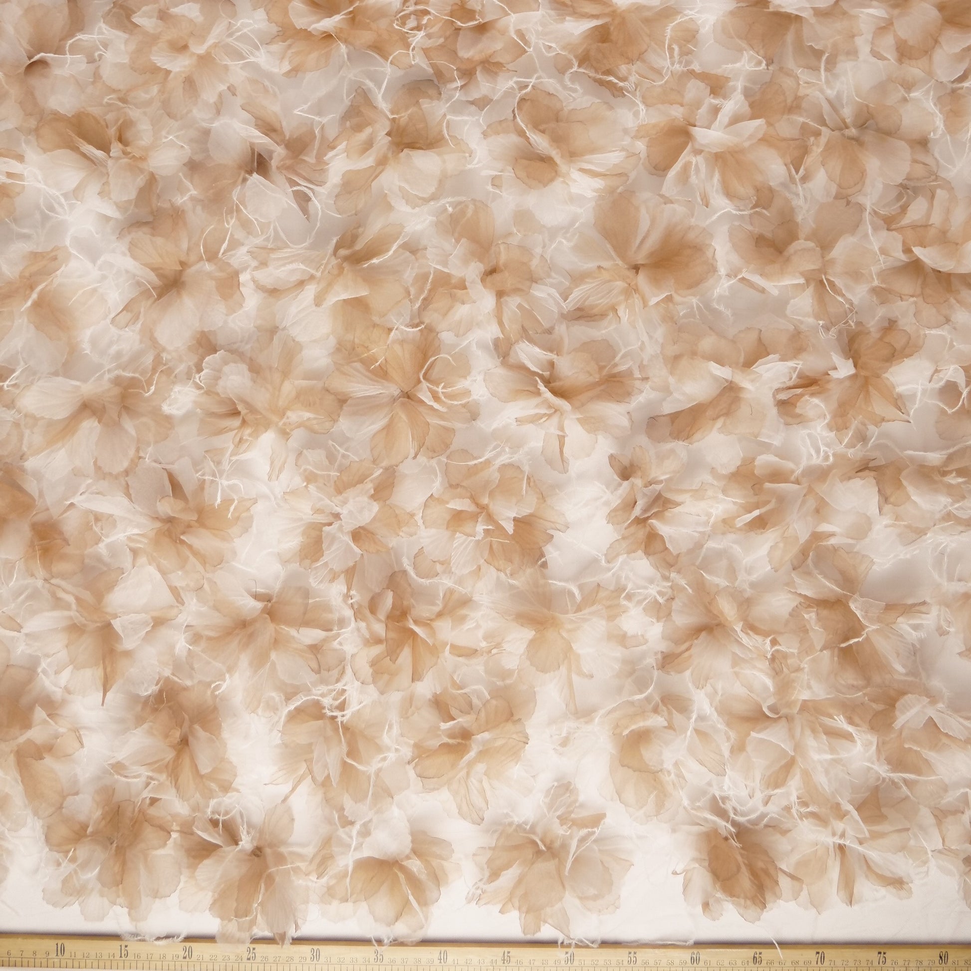 El Tul Hermés es una tela bordada de alto nivel ornamental y lujoso, ideal para creaciones sofisticadas. Destaca por sus aplicaciones de cristales, canutillos y mostacillas, combinadas con diseños en 3D que aportan volumen, profundidad y un acabado exclusivo. Es una elección perfecta para vestidos de gala y prendas elegantes de gran impacto visual.