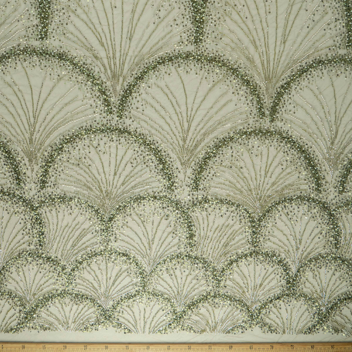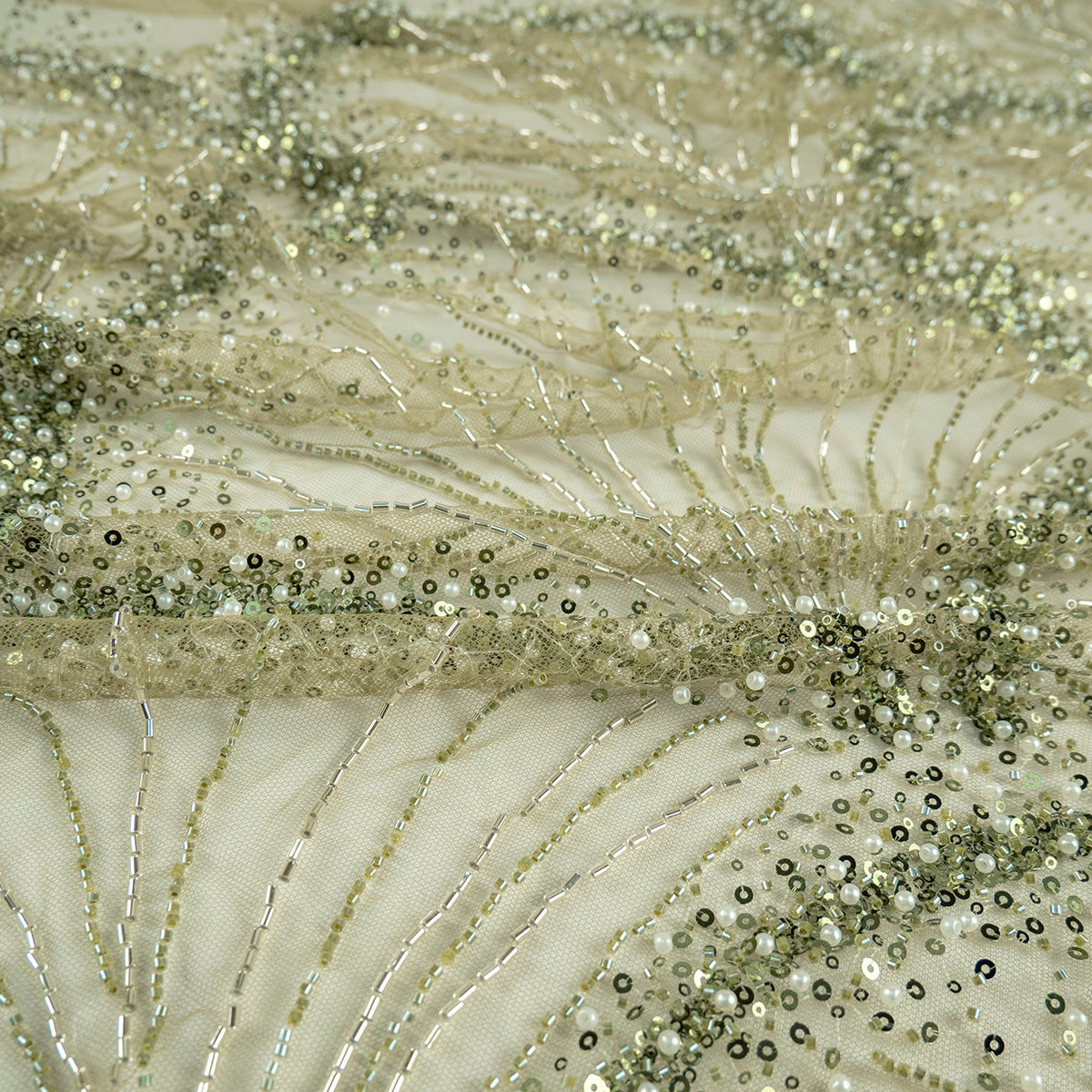 La tela Tul Prada esta realizada sobre una base de tul en el cual se bordan diferentes tipos de diseños en hilos y cordones. A los cuales de manera ornamental se le aplican piedras, canutillos, mostacillas y paillettes haciendo que cada pieza sea diferente y se pueda usar tanto de día como de noche según la ocasión lo amerite.
